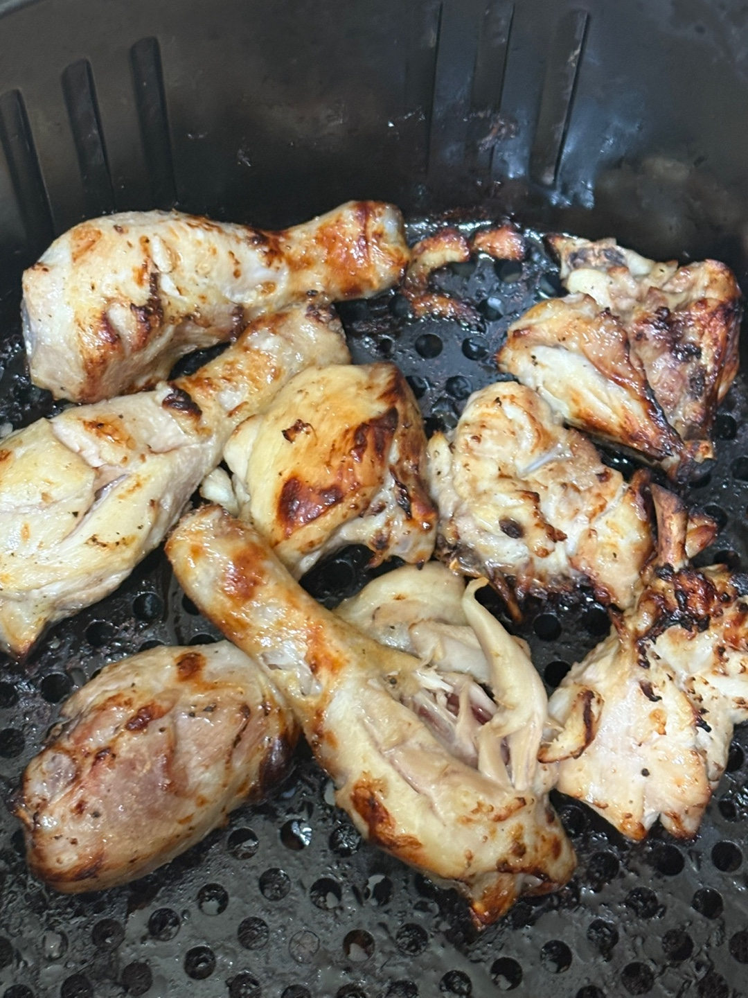 추가로 10분 더 돌려본보니 닭다리도 안쪽까지 다 익었네요!