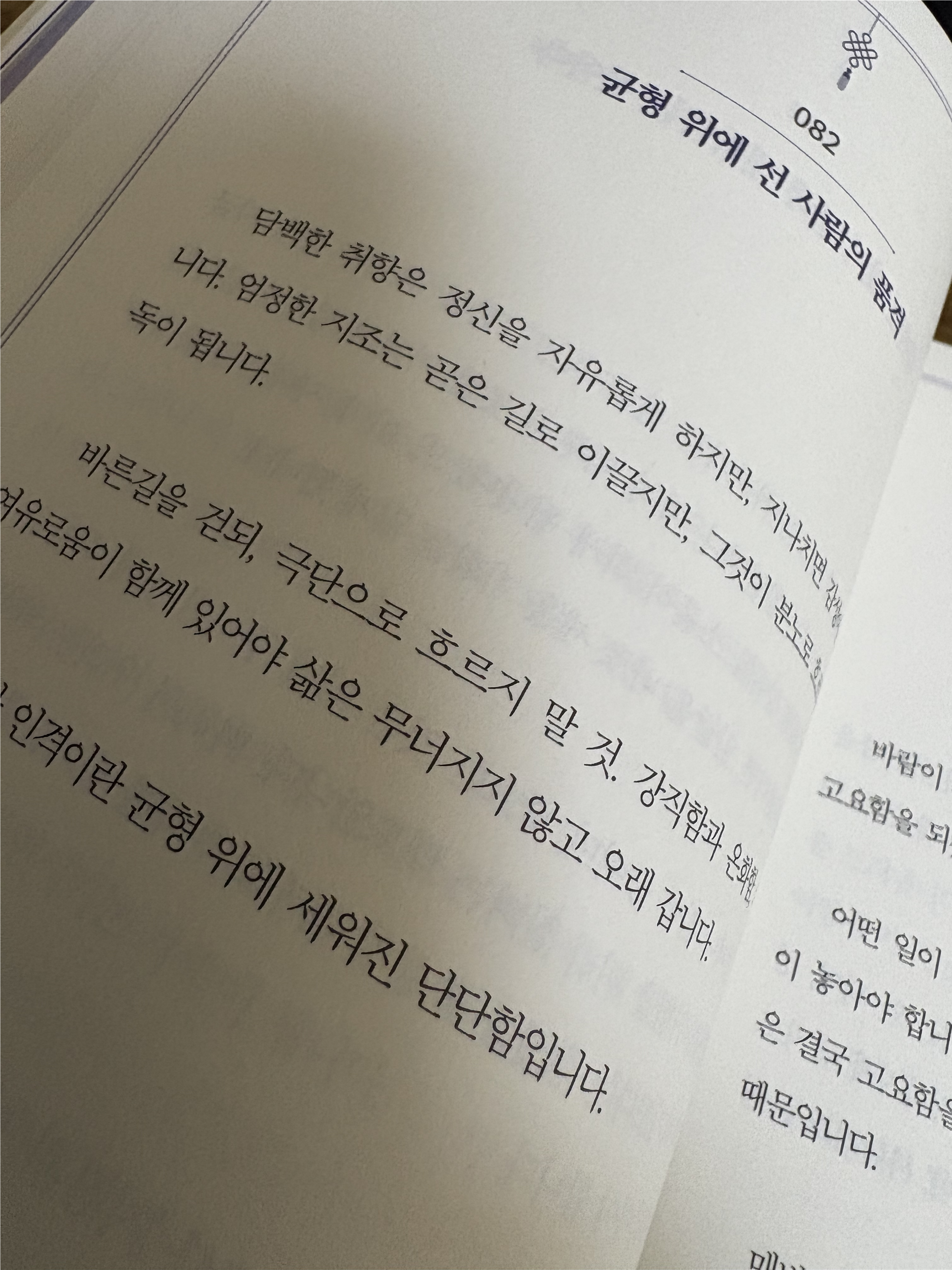 이번에 리텍출판사에서 '무너지지 않는 마음공부'라고 철학 에세이를 발간하여 좋은 기회로 좀 더 빠르게 읽어보게 되었는데, 문체도 간결하고 자기전이나 아침에 읽어도 명료하게 머리에 잘 들어오는 내용들이라 추천하고 싶다.