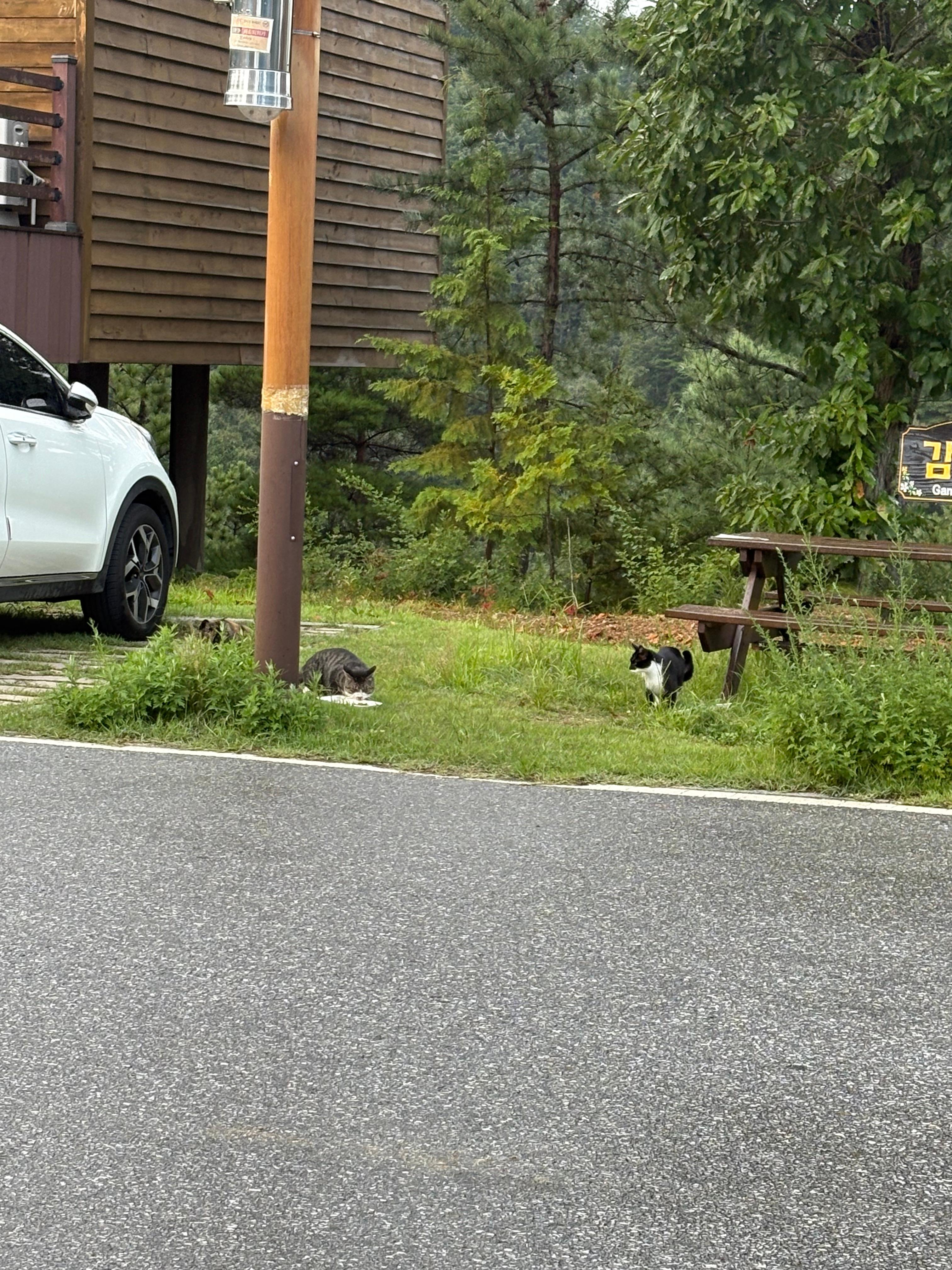 새끼 고양이 2마리랑 으른 고양이 3마리가 대가족(?)으로 몰려다니는데 매일 고기 구워드시는 여행자들이 있으니 여기서 옹기종기 사는 모양이에요. 고양이 어딜가나 많긴 한데 여기 휴양림 고양이들은 길냥 답지 않게 털 윤기 반지르르하고 애교가 정말 많아요 ㅋㅋ사람 너무 좋아함