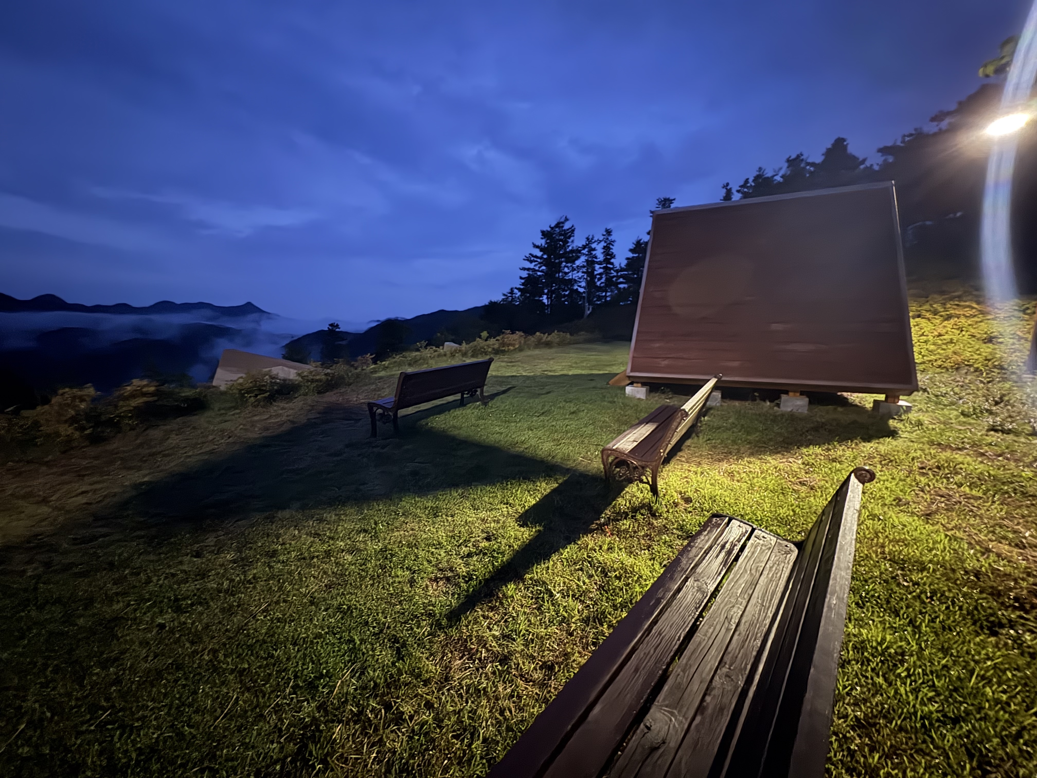 밤에 산책도 나가봤는데 저렇게 위에 정자나 데크도 있어서 젤 꼭대기에서 바라보는 산 풍경이 멋있어요