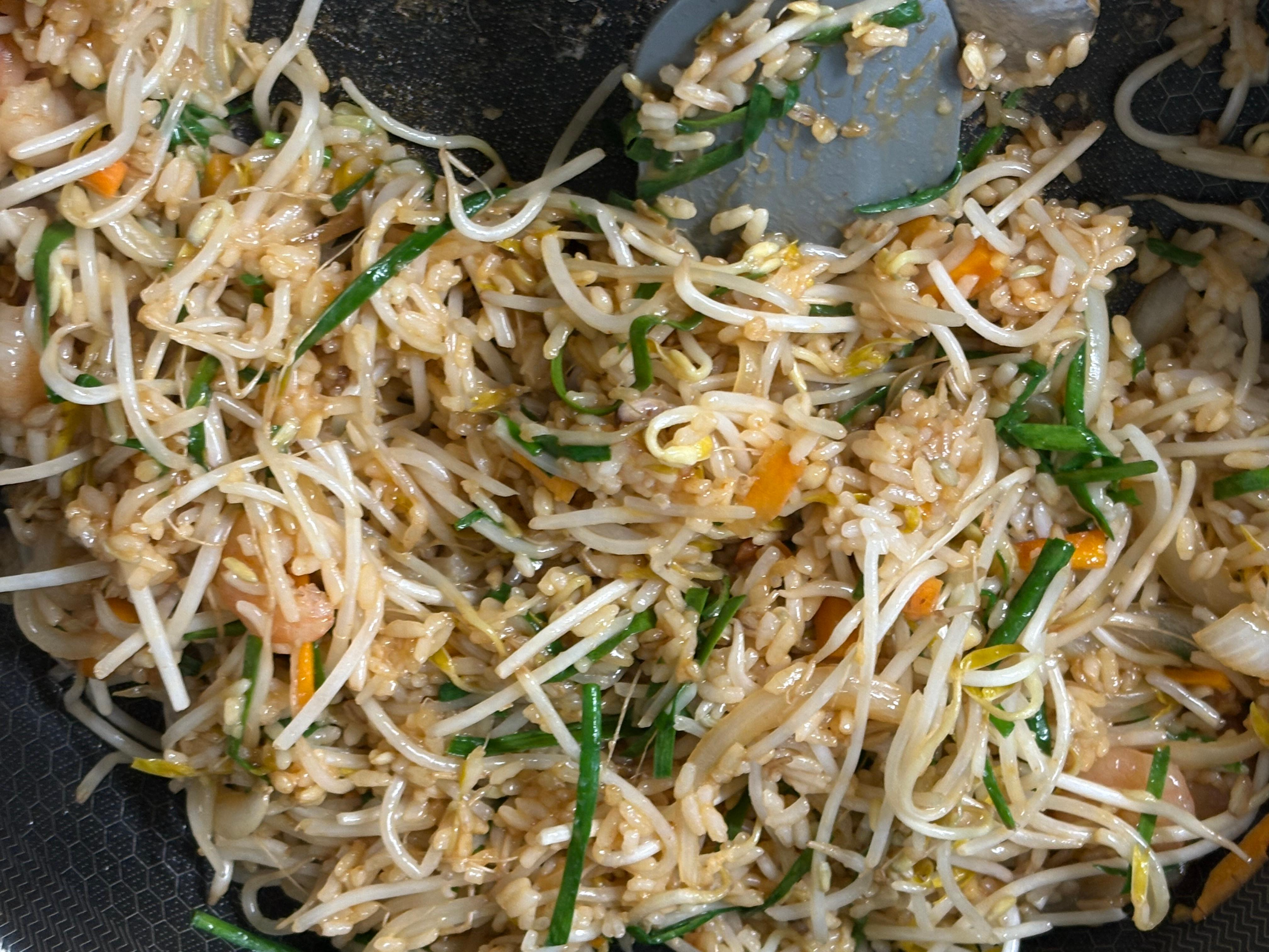 근데 여기서 중요한게 숙주와 부추를 넣기 전에 밥의 수분기를 모두 날려야된다는거에요