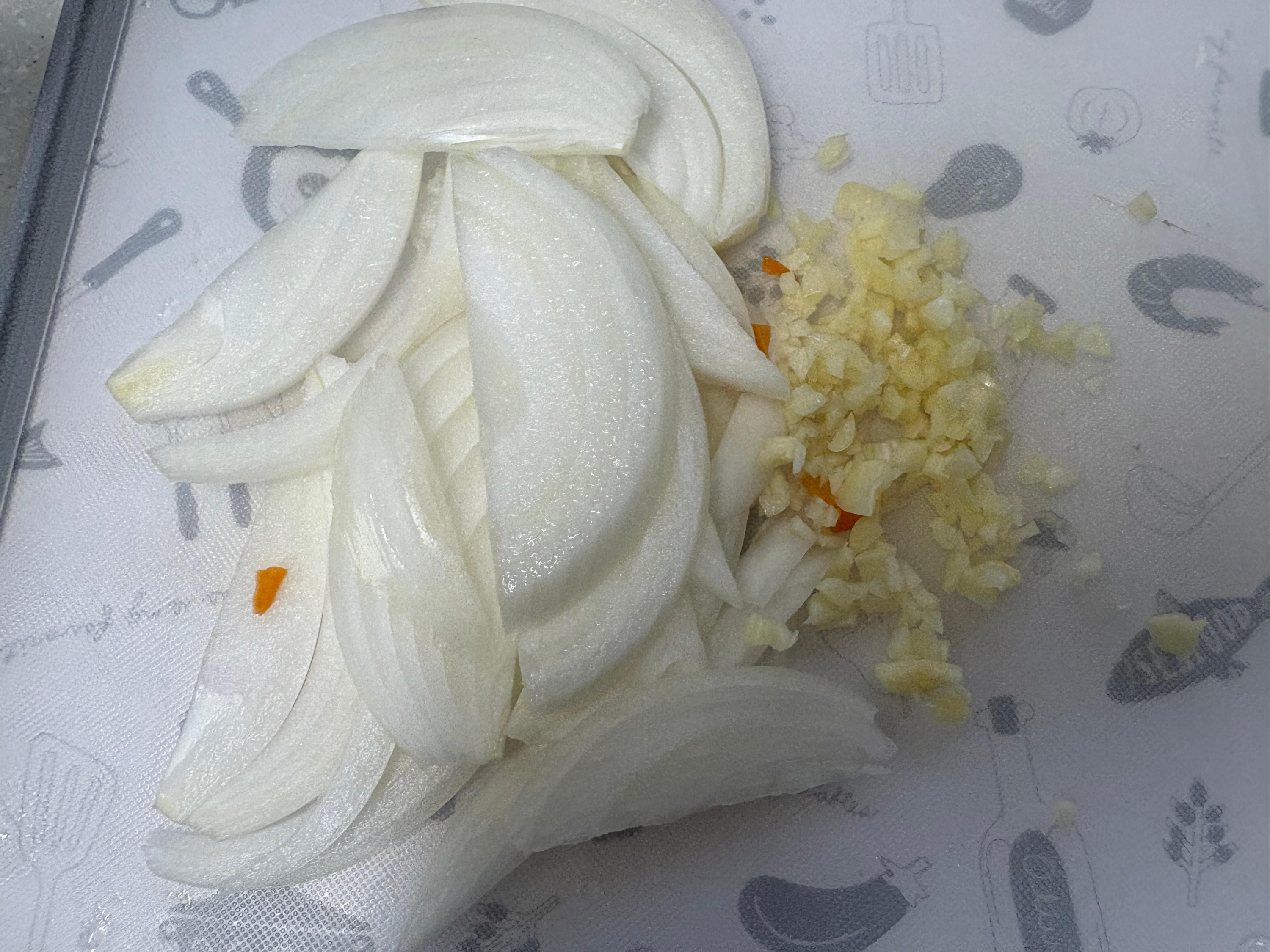 2인분 기준으로 밥양 정해줬구요 양파 반개 채썰어주고 마늘도 적당히 다져서 준비