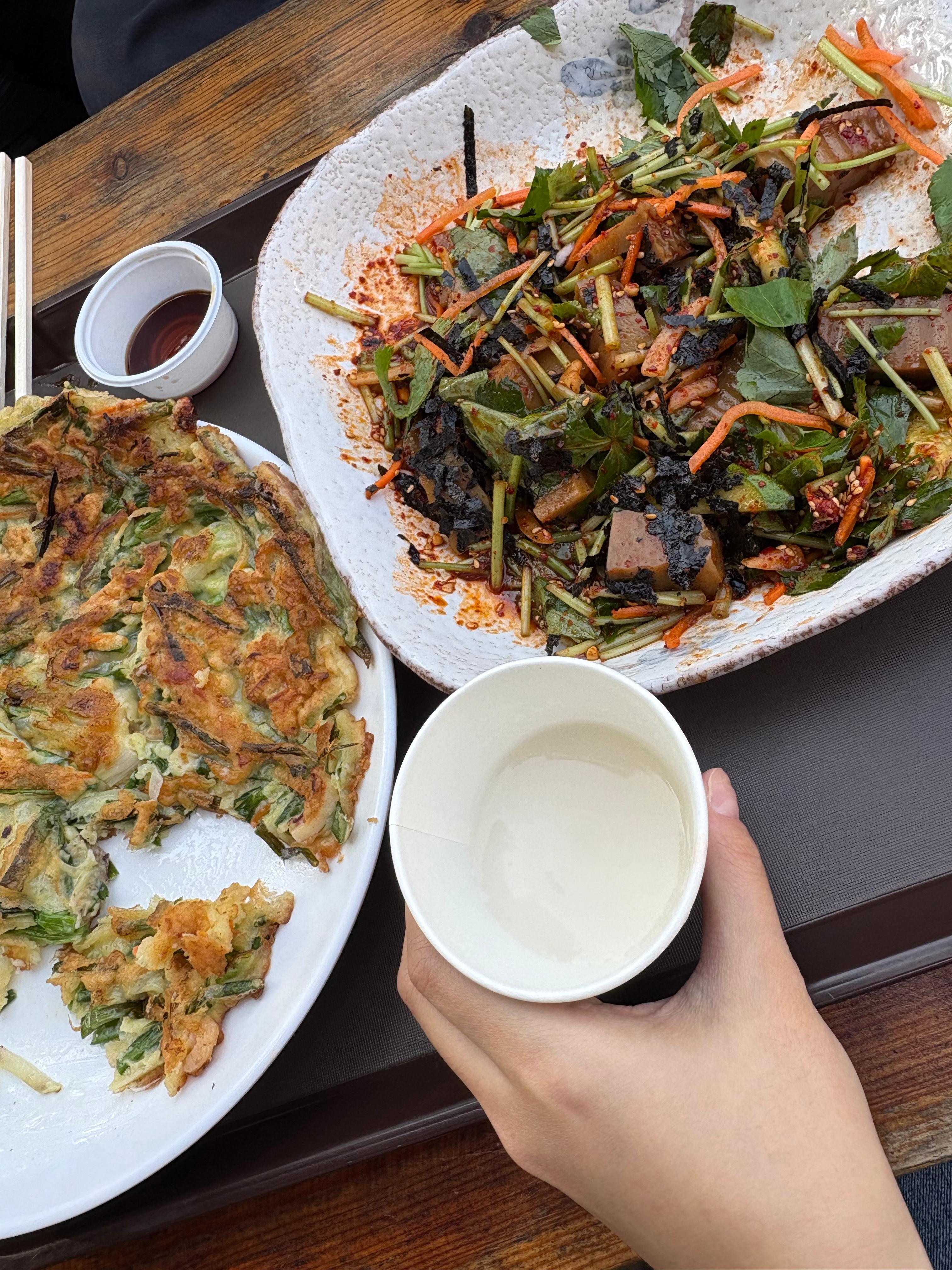 기대 안했는데 파전 퀄리티가 나쁘지 않아요. 계란물만 넣은게 아니라 파도 두둑히 있어서 식감이 아주 만족스럽습니당