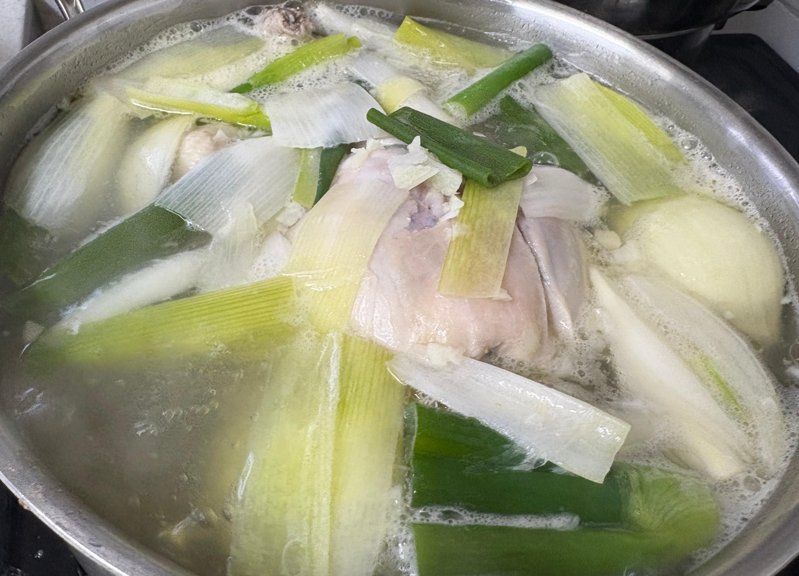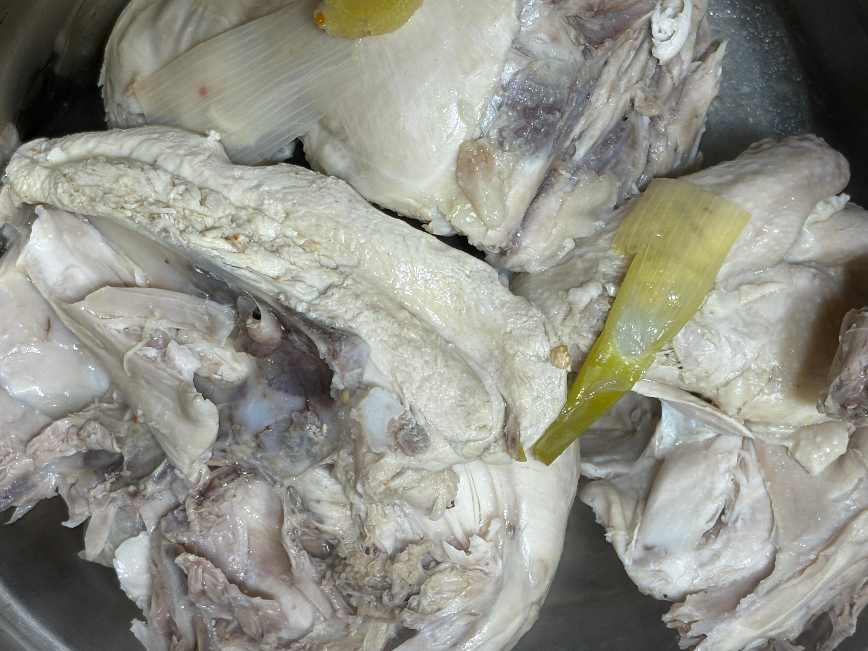 닭은 30분 익혔으면 건져내고. 잠깐 식히는 사이 닭고기를 찍어먹을 특제 소스 만들어볼게요!