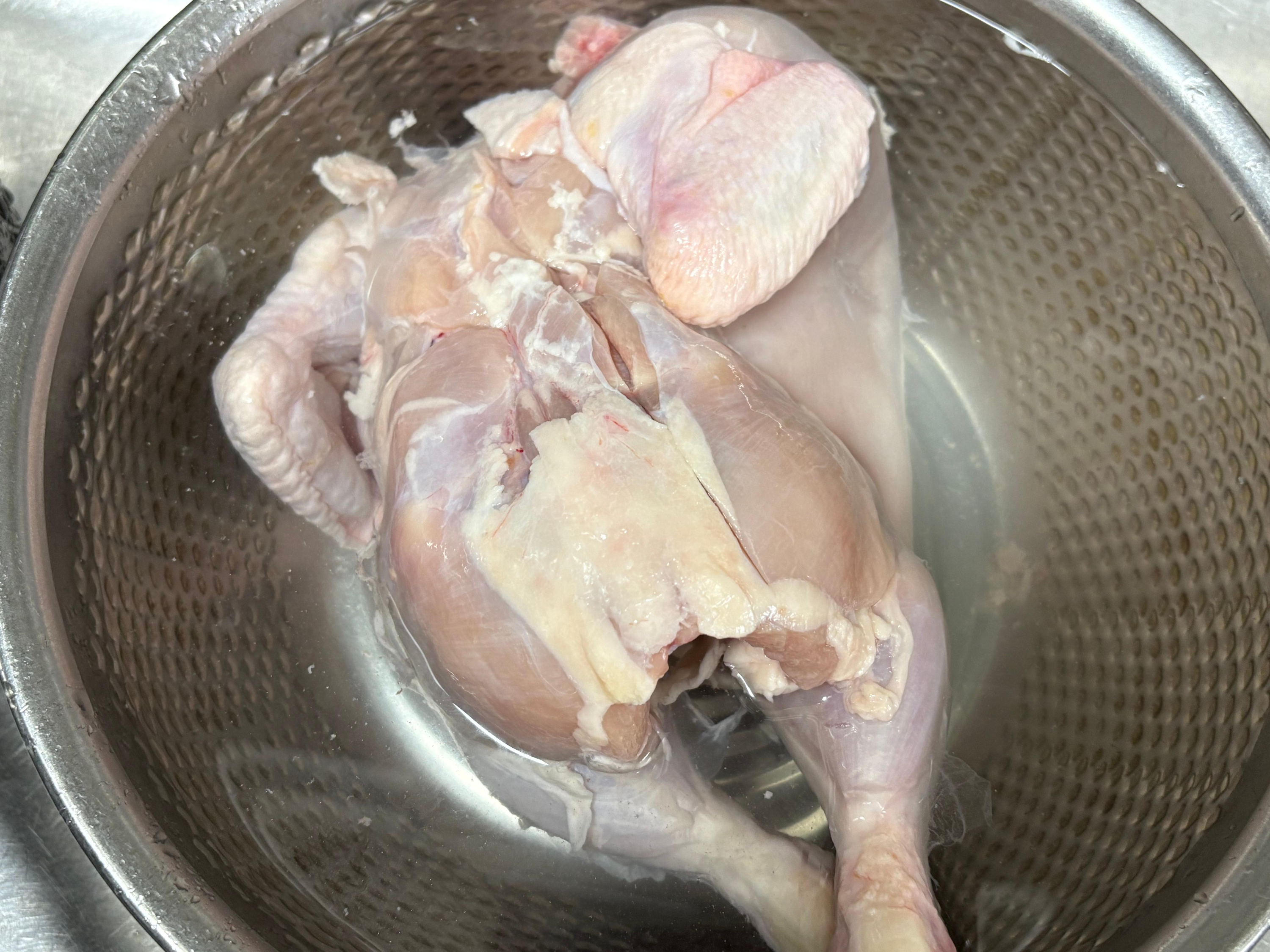 닭 내장 잡내 날 수 있는 부분 차가운 흐르는 물로 한 번 세척해주고 , 찬물에 소주 한잔 정도 넣어서 15분 정도 담가줬어요. 살짝 삶아주는 방법도 있는데, 이번엔 그냥 닭 기름 국물도 나오라고 사전에 삶아서 요리하지 않았습니당...