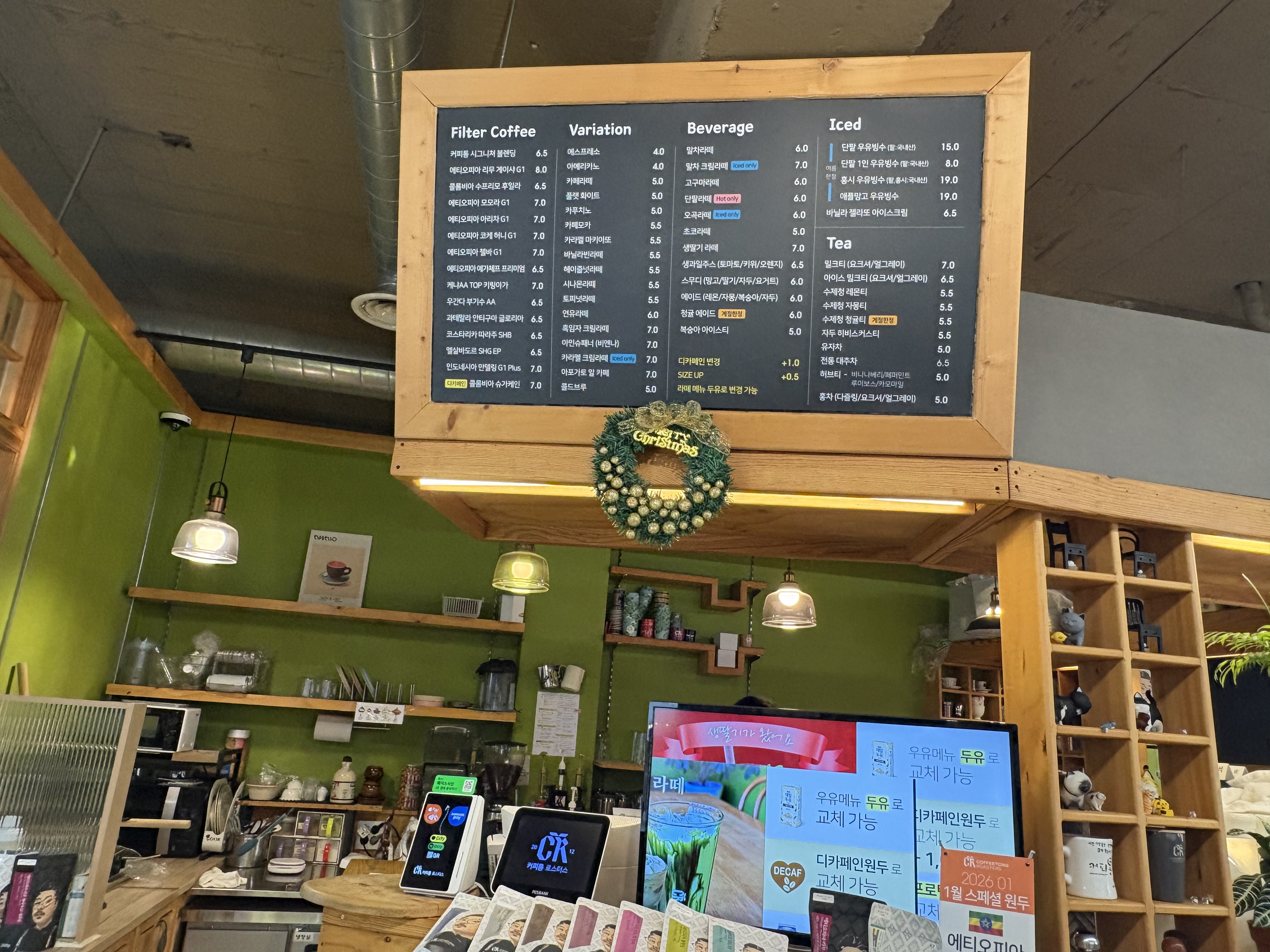 간판에 커피통만 보고 추워서 홀린듯 들어갔지모에요